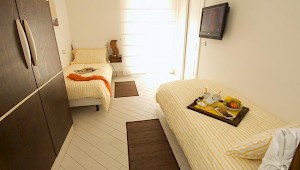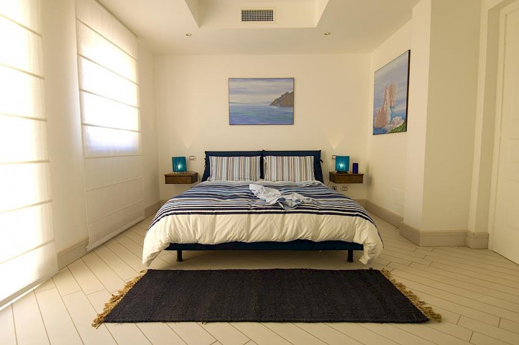 1 junior twin bedroom (ideal for children) with en-suite bathroom, can be converted to a double with shower 3 queen bedrooms, each with en-suite bathroom with shower.1 master bedroom equipped with TV, en suite bathroom with shower and direct access to a private balcony with sea view. All bedrooms feature independent A/C units, flat screen satellite LCD TVs, hair dryers and toiletries in the bathrooms.