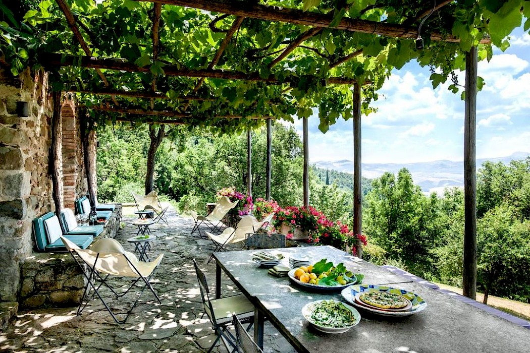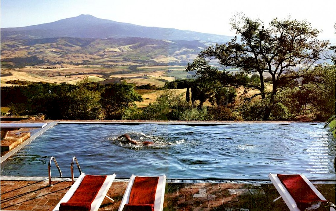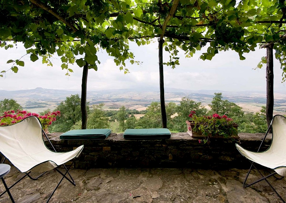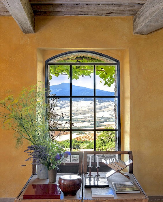 The fabtastic views directly over the Val d'Orcia. The house has been designed and is owned by one of Italy's top interior designers. and has been published in many leading design publications. The property is only a short drive or walk to Fonteverdi Tuscany in Castiglioncello del Trinoro, with its wonderful wine bar and restaurant. And lastly, the layout and design of the house with its Tuscan charm and fireplaces just make it so romantic, not only in the summer, but also in the cooler seasons. We also offer at this villa, as we do at all our Val d'Orcia properties, full concierge service. Advice, restaurant recomendations and reservations, tour and car bookings, etc. are just a local phone call away. And we have a great variety of cooks for your consideration, also.