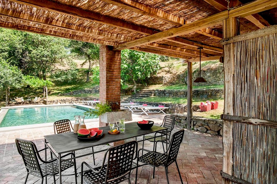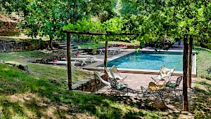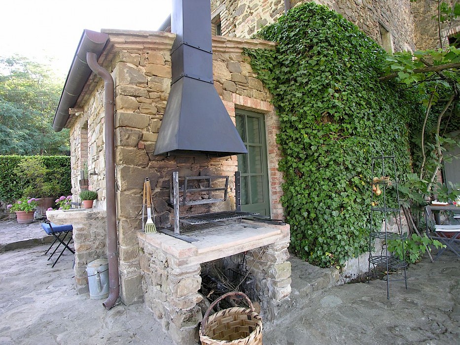 The grounds are extensive, comprising 30 acres of private woods and a bountiful vegetable garden and orchard. The property boasts a gorgeous 12x6 meter swimming pool (boiler-heated), conveniently equipped with a covered picnic area, charming straw changing hut and fridge; the pool is splendidly positioned and offers spellbinding views of the famed Val d’Orcia landscape. An exquisite outdoor vine-sheltered paved terrace, with built-in barbecue, seats up to 16 guests for dreamy sunset drinks, sun-kissed lunches and memorable dinners parties.