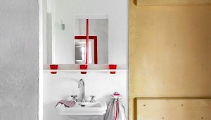 Lobby opens to: guest bathroom(previously pig's stables with brick barrel vault ceiling)