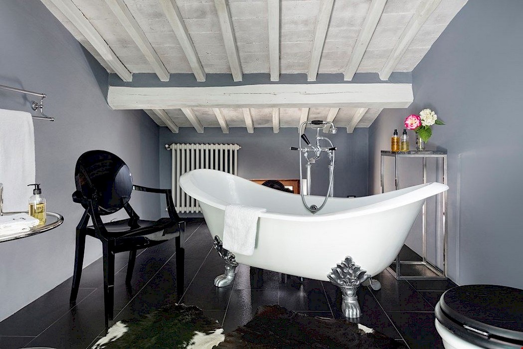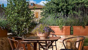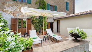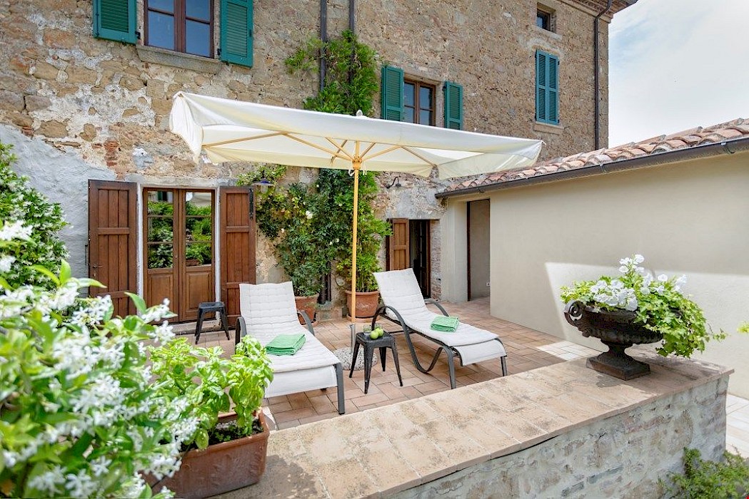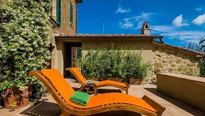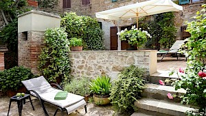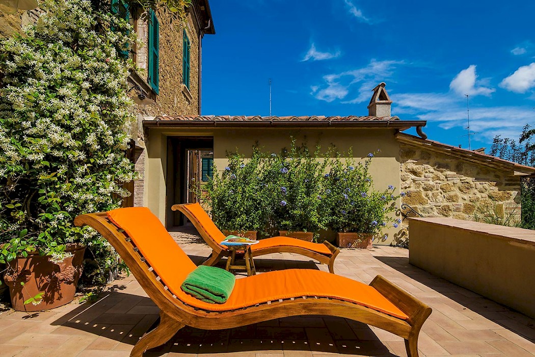 Very stylish decor with a small pool in a lovely hiiltop medieval Tuscan village with wonderful views over the countryside and the village. The best of both worlds: country and village.