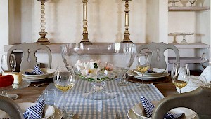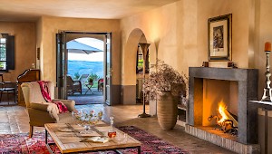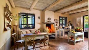 - Fully equipped kitchen with fireplace and arch to dining room with French doors leading to covered loggia
