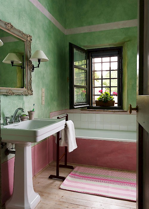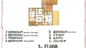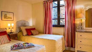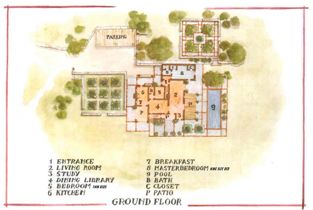 Second master king bedroom with en suite bathroom with shower, walk in closet, and access to small terrace - Queen bedroom with en suite bathroom with shower, walk in closet, and access to small terrace - Twin/queen bedroom - Queen bedroom that share an adjacent bathroom with shower with the 5th bedroom-Terrace-Stone steps to garden