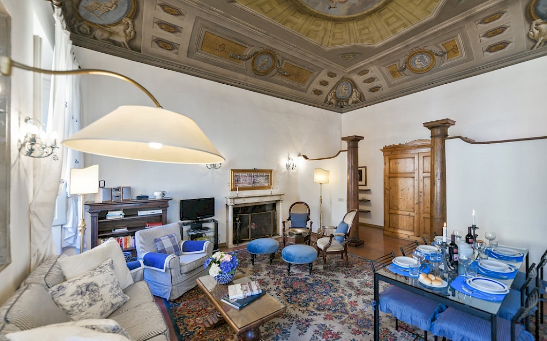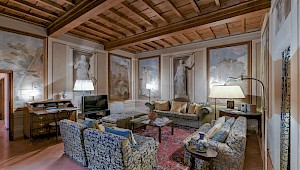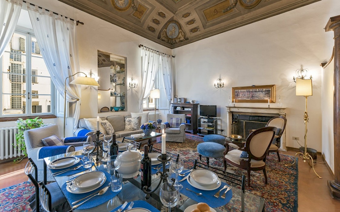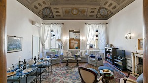 Large 6 bedroom/6 bathroom apartment, right on Piazza Santa Croce, in the heart of Florence. Decorated with unique and historic plasterwork and frescoes.