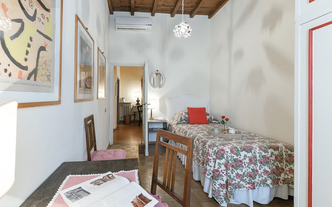 The apartment is located in the Santa Croce district on the eastern edge of Florence’s historic city centre. The area takes its name from one of the city’s most remarkable churches. The Santa Croce neighbourhood provides a rare glimpse of “old” Florence with lively markets and tiny leather and artisan workshops, including the flea market (Mercato delle Pulci) at Piazza dei Ciompi. The Mercato St. Ambrogio, the city’s second main food market after the Mercato San Lorenzo, is within close walking distance too. Furthermore, the area is just a stone’s throw from some of the city’s main cultural attractions such as the Bargello Palace, which houses one of Italy’s most important museums, the Casa Buonarroti, (the former home of Michelangelo), Piazza della Signoria, Palazzo Vecchio and Ponte Vecchio, not forgetting the magnificent Santa Croce church and museum. You will also enjoy the largest selection of boutique shops, bars and typical restaurants and pizzerias within the city. Three of the finest and most expensive restaurants, Cibreo, Pinchiorri and Alle Murate are located nearby. There is also a good choice of mid-priced options. By night, Santa Croce becomes one of the liveliest parts of town and with its pedestrianised streets and illuminated buildings it transforms into the perfect venue for an after-dinner glass of wine or evening stroll. For those choosing an apartment in this area Santa Croce offers several food stores, supermarkets, laundrettes and individual gift shops as well as being adequately served by the local public transport service.