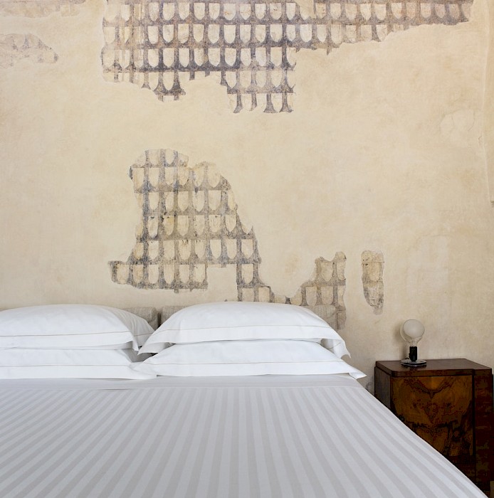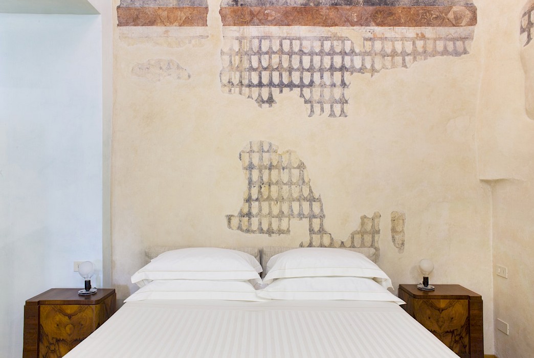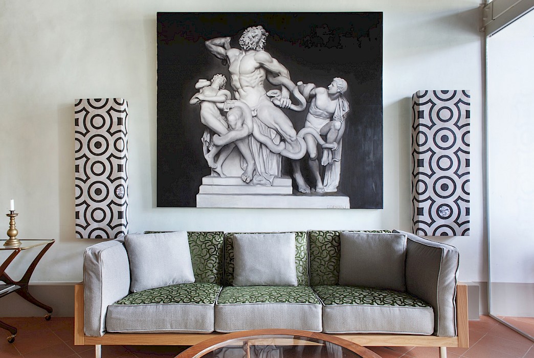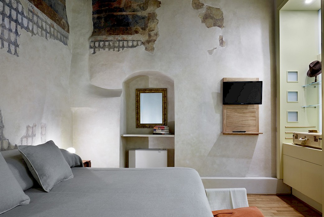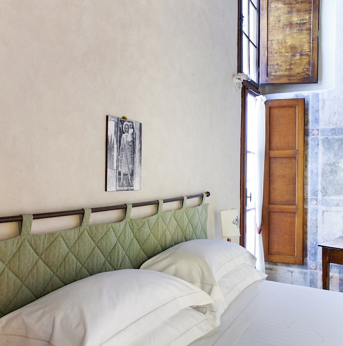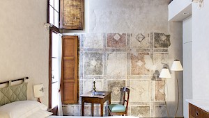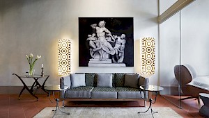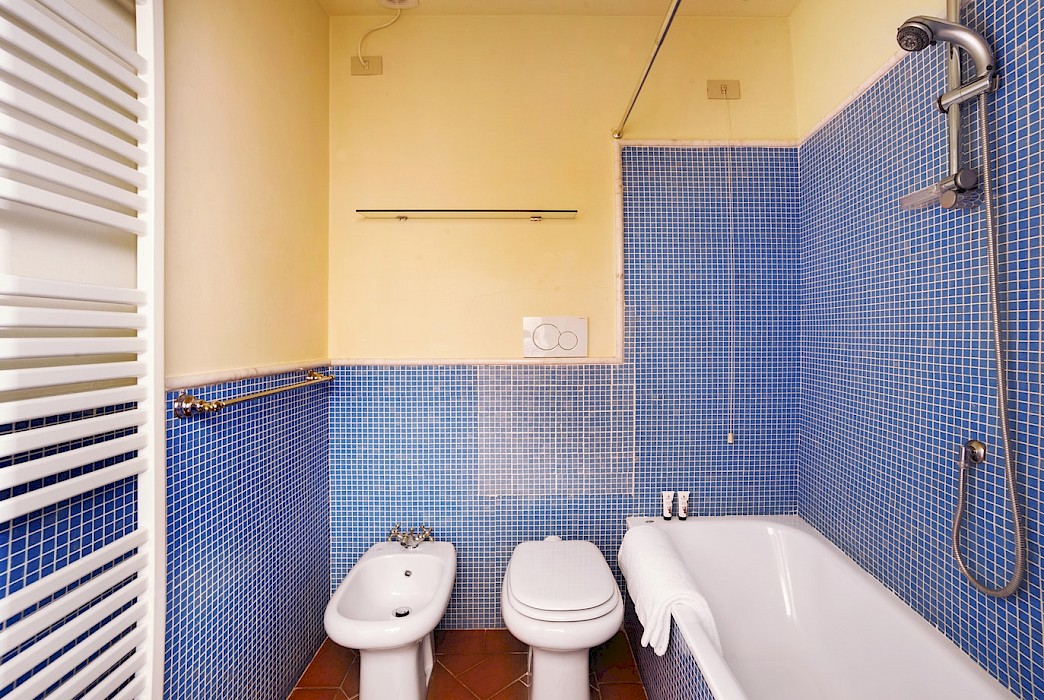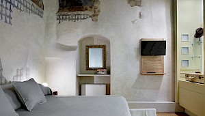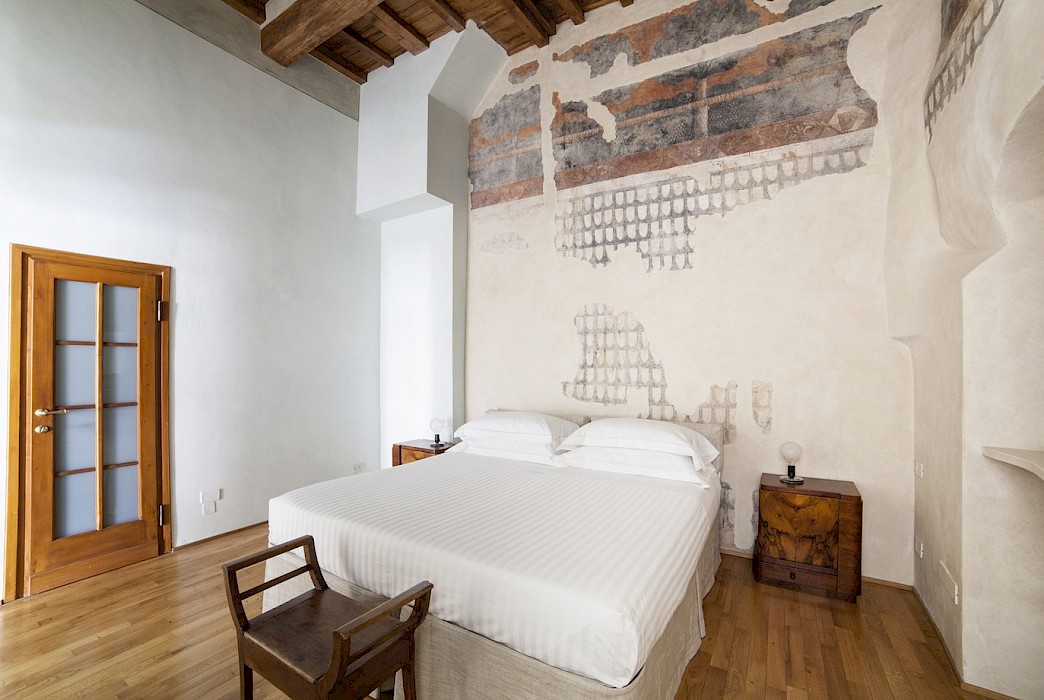 Despite their traditional tiled floors and beamed ceilings, this home’s pastel-painted living areas are largely contemporary in style, with some very striking design pieces and artworks. The master bedroom, with its frescoes and antiques, is contrastingly classic – but for its bold scarlet ensuite bathroom. Situated directly on Piazza Sante Croce in one of the most hoistoric Palazzos in the city, owned by a prominent noble family. It is also not far from the Piazza della Signoria, around which you’ll find many shops and restaurants.