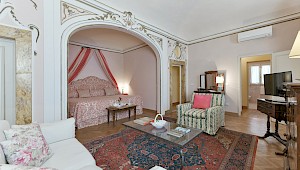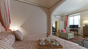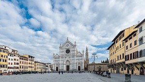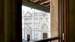 Building dates back to the second half of sixteenth century , in a perfect position inside Piazza Santa Croce, in the heart of Florence city center. The facade of the building is one of the most relevant elements of the entire Square. The walll decoration consists of beautiful paintings which represent allegorical illustrations, cherubs, flowers, arabesque and plant elements. In this district there are streets full of shops, delightful restaurants and within a few minutes walk it's possible to reach the most important monuments of Florence.