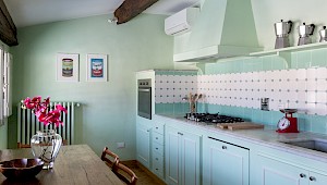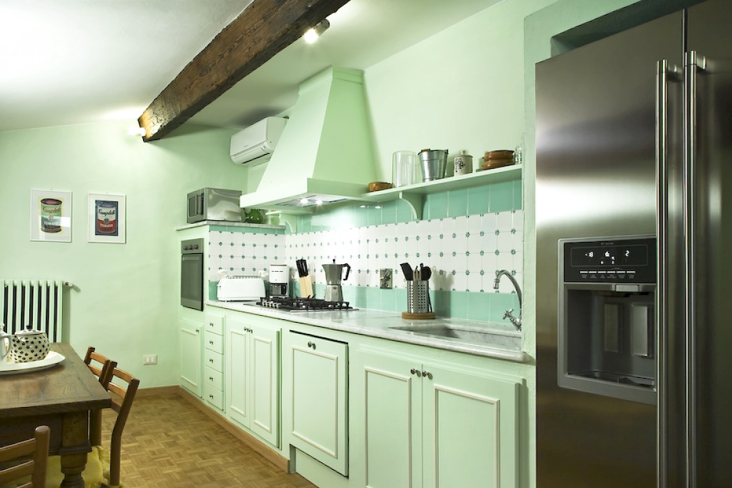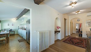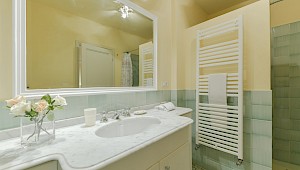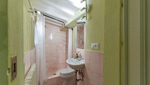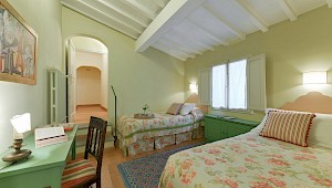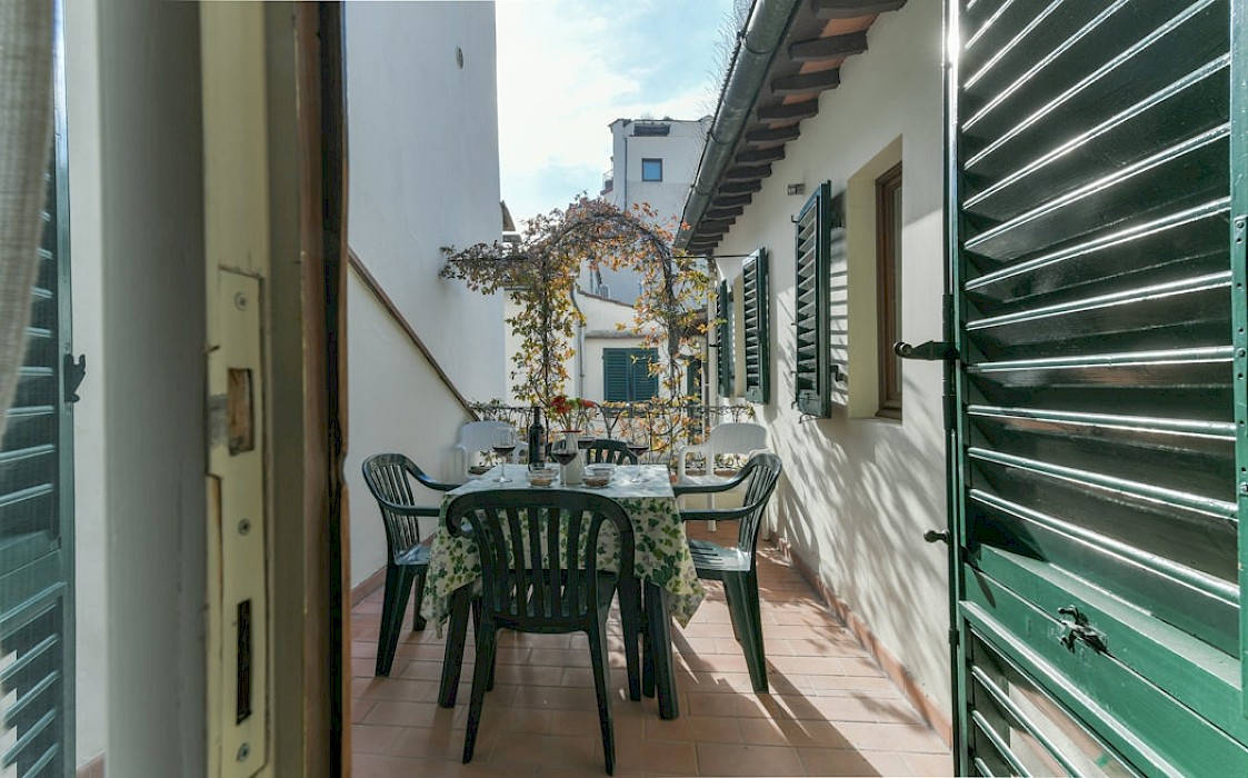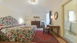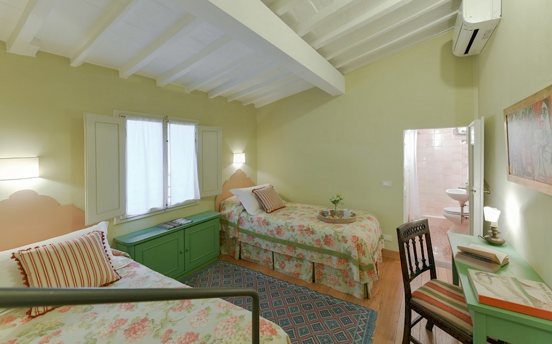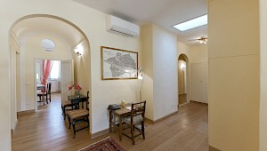 Apartment is on one level in classical Florentine style ( 183sq.mt - 1969 sq.ft) can host up to 6 people and offers 3 bedrooms and 3 full bathrooms. At the entrance there is a living room furnished with comfy couches and flat screen Tv . On the left side of the living area there is the connecting door to dining room with 6 seater dining table; follows the modern and well equipped kitchen. A corridor connects the living area with the sleeping area: on the right is the first double bedroom( mattress with 160 cm - can be divided ) and windows overlooking the rooftops, in front of this bedroom is a bathroom with bathtube, on the left is the second double bedroom (mattress with 160 cm - can be divided) and access to the private terrace and the ensuite bathroom with shower. Continuing to the left and going down 4 steps it's possible to reach the third bedroom with two single beds (mattress with 90cm - cannot be joined together) with en suite bathroom with shower and curtain.