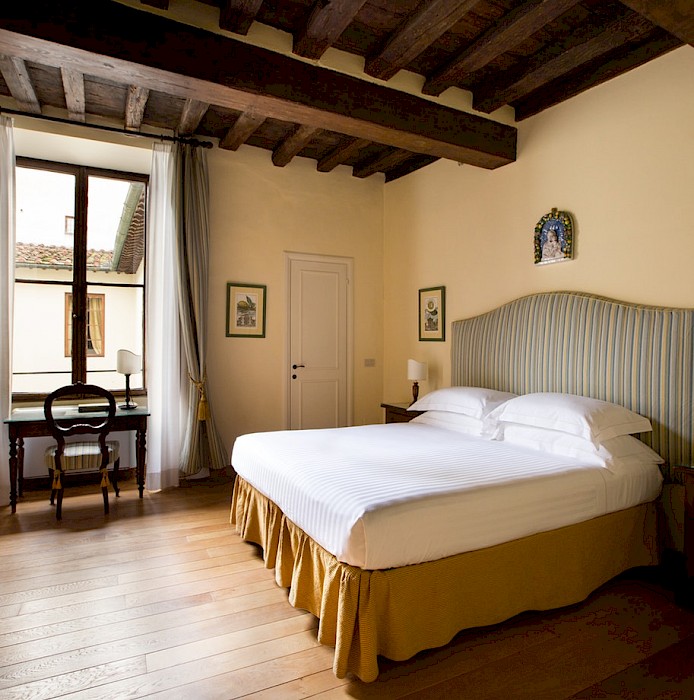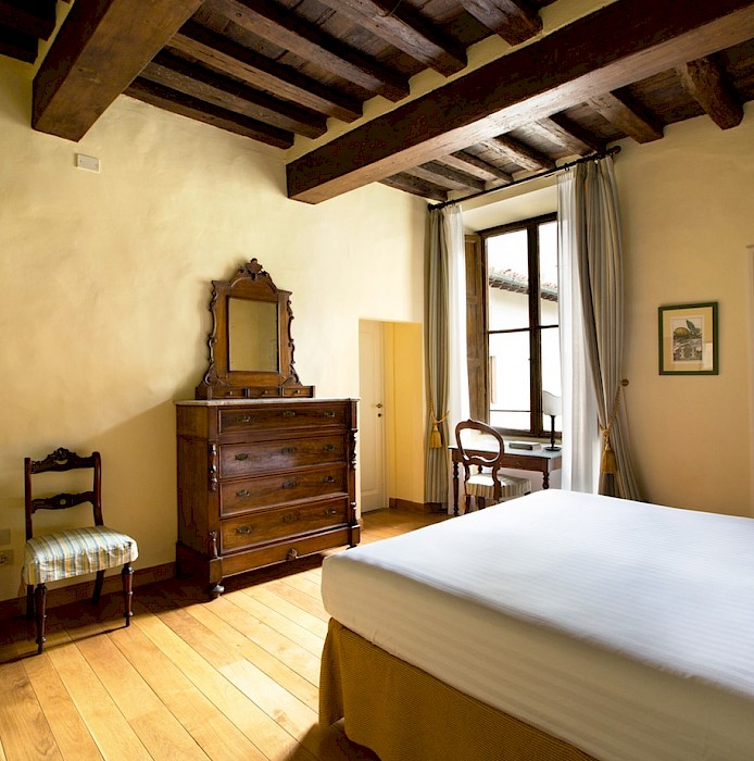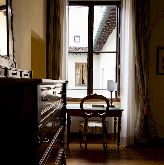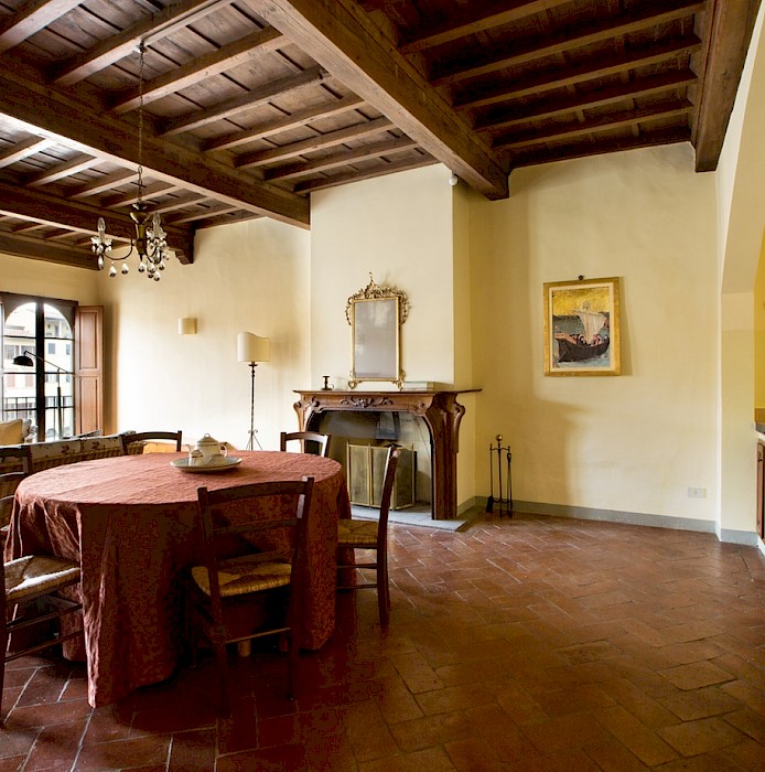 Located on the second floor (with elevator)of Antellesi Palace, which dates back to the second half of sixteenth century, in a perfect position on Piazza Santa Croce, in the heart of Florence city center. The facade of the building is one of the most relevant elements of the entire Square. The walll decoration consists of beautiful paintings which represent allegorical illustrations, cherubs, flowers, arabesque and plant elements. In this district there are streets full of shops, delightful restaurants and within a few minutes walk it's possible to reach the most important monuments of Florence.