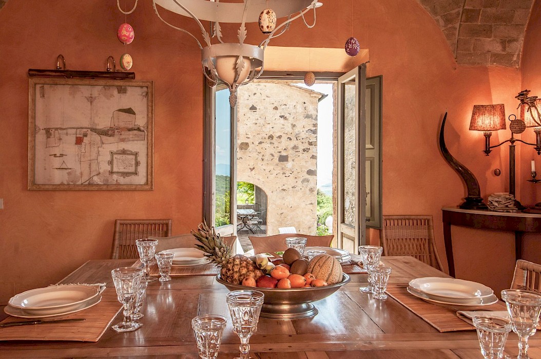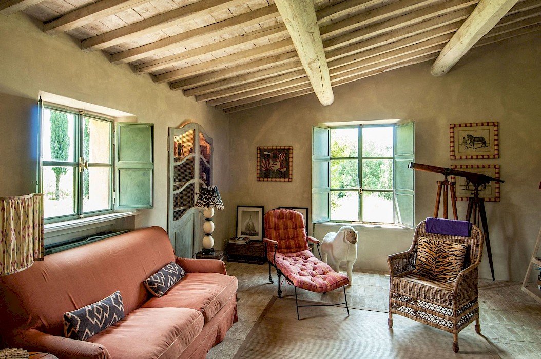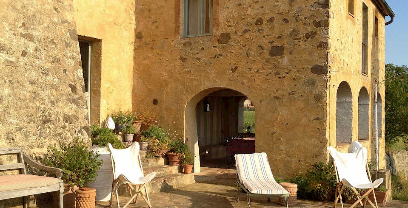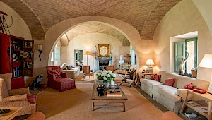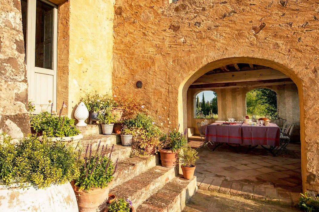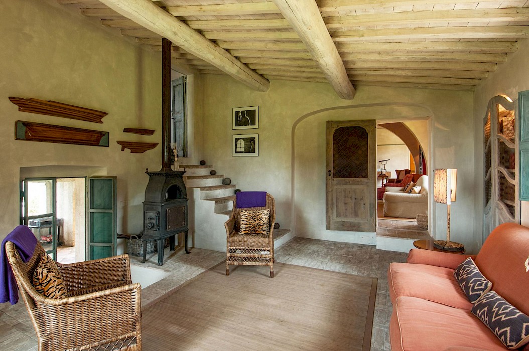 Fontanelle is without doubt one of our loveliest Tuscan properties. It is located to the west of Montalcino, an area renowned for its beauty and for its wines, especially the famous Brunello di Montalcino. The property is in a spectacular position, surrounded by vineyards, olive trees, cypresses and with views of the surrounding hills. The house has recently been restored and furnished to an exceptionally high standard by the owner, a well-known Italian interior designer. The house has been featured in several books and magazines, including House and Garden, Elle Decor and Tuscany Interiors. The rooms have been painted and furnished throughout in warm yellows and terracottas, which blend perfectly with the brick tiled floors, exposed beams and sunny open spaces. The magnificent living room with vaulted ceilings opens to the rear of the house to a pretty terrace with vines, pots of flowers and views over the countryside. Off this terrace is a covered dining terrace, also with wonderful views. Resident cat.