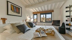 Here you will find comfort and style combined, in the perfect city location! Right in the historical center of Florence, Giorgina was wonderfully renovated into a bright 3 bedroom duplex penthouse that you can call “home away from home”. Giorgina is a modern penthouse apartment set on a walk-up 17th century Florentine palazzo overlooking a beautiful pedestrian piazza and its old church. The apartment features high quality finishing and design furniture, allowing you to experience the Old World European charm accompanied by the most modern amenities. Giorgina creates an indulgent retreat after a day experiencing the plethora of activities that Florence and its surrounding can offer.
