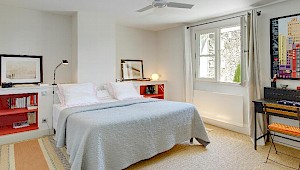 On the ground floor of this Provençal village house there is a comfortable living room and an open plan kitchen that leads out to a terraced dining area. Upstairs, two bedrooms on the first floor enjoy captivating garden views. There is also a third bedroom on the top floor, with the option of either a king size or twin beds.