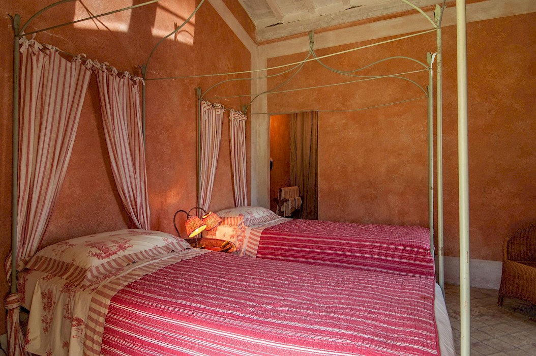 Sitting room; master bedroom with four posted bed and en-suite bathroom; double bedroom with en-suite bathroom; twin bedroom and double bedroom sharing an interconnecting bathroom. All bedrooms on this floor have air-conditioning.