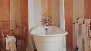 Entrance hall; large dining room with fireplace and french windows opening onto the garden; spacious sitting room with french windows opening onto the garden; kitchen also opening onto the garden; double bedroom with four posted bed and en-suite bathroom.