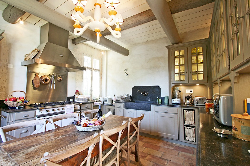 The courtyard and garden of 2,800 square meters is fully enclosed with a heated swimming pool. The outside table seats 12 and there is plenty of seating around the pool.