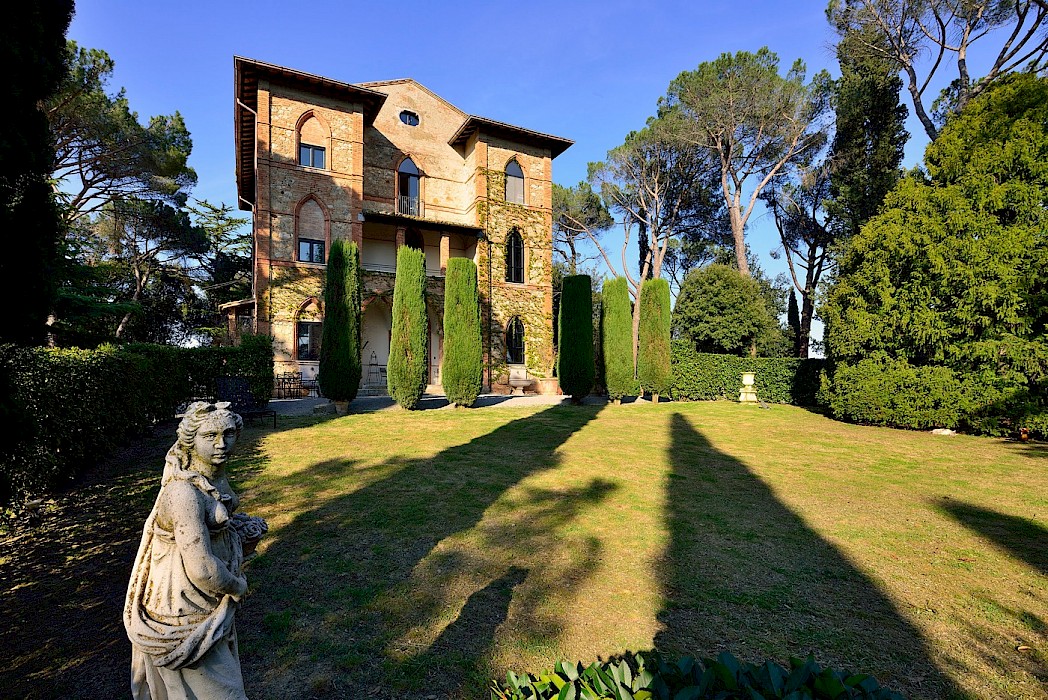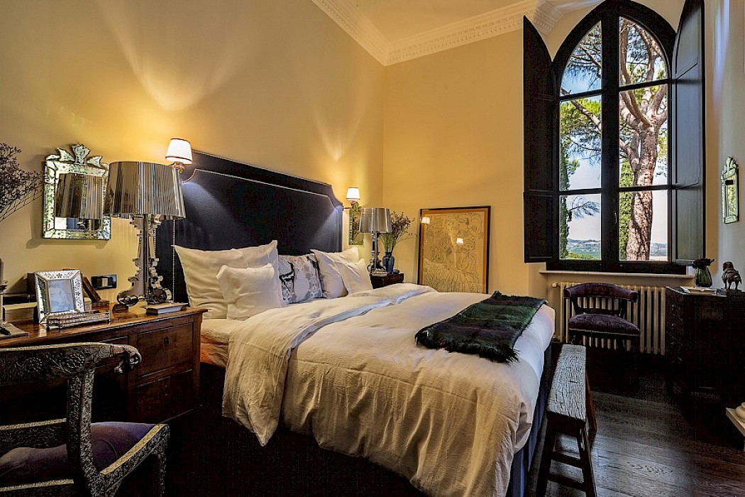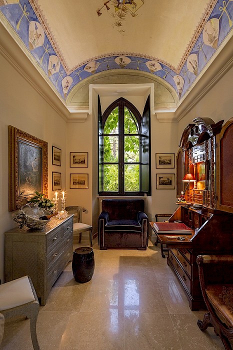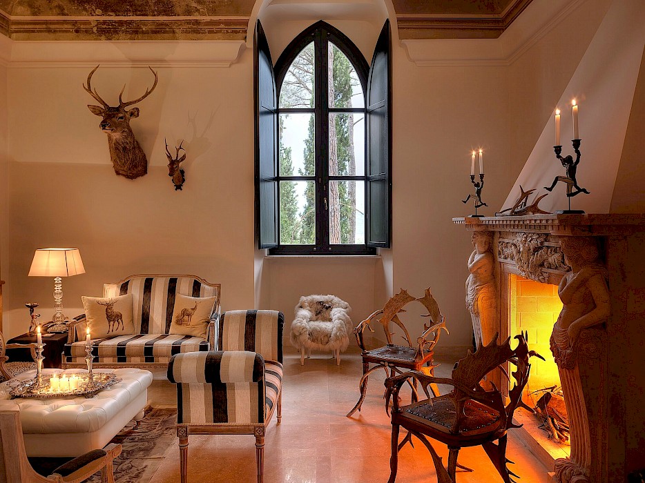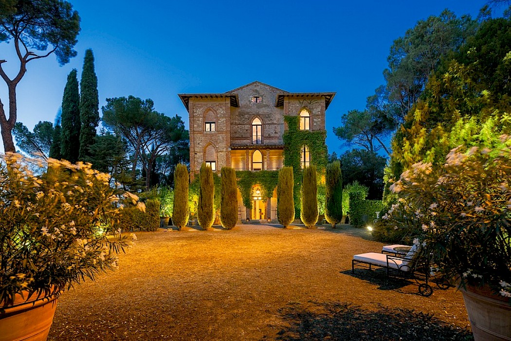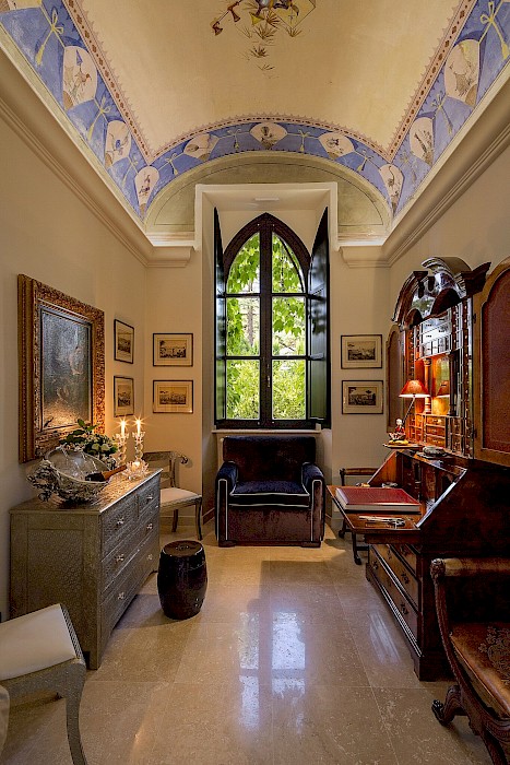 Palazzo Chiusi is a luxurious villa dating back to the 18th century with a unique Gothic style facade. The owner, a famous interior designer who managed the refurbishment of the Hotel Hassler in Rome, directed the recent renovation herself transforming the property into a true masterpiece. The villa now combines sophisticated interior design with personal distinctive touches creating authenticity and exclusivity. Located in an enviable position in the Tuscan countryside and immersed in a lush park; the perfect place to enjoy an intimate and private vacation.