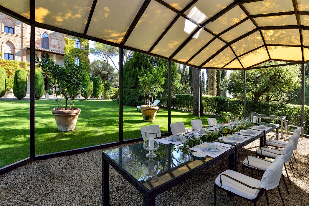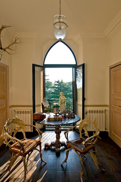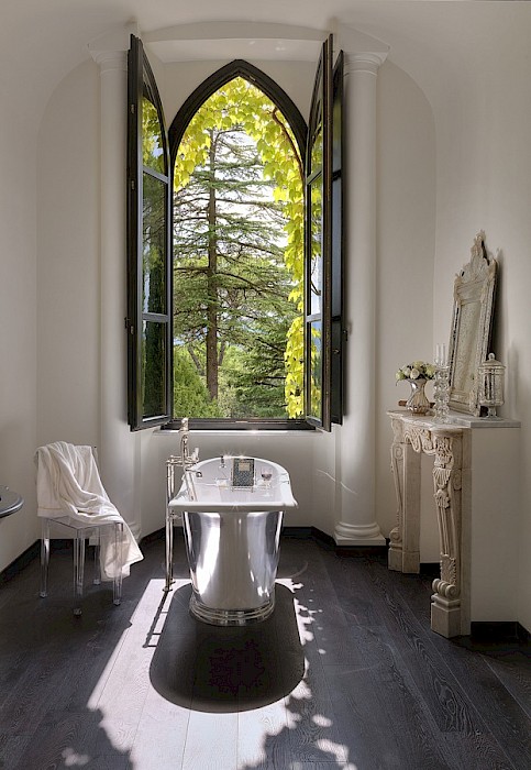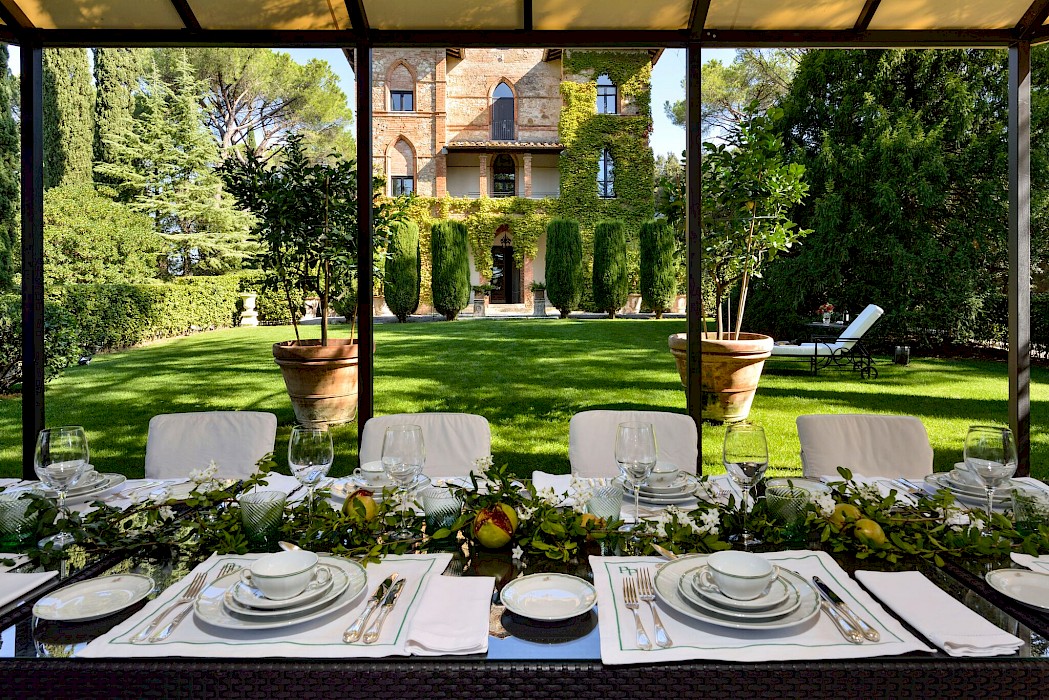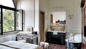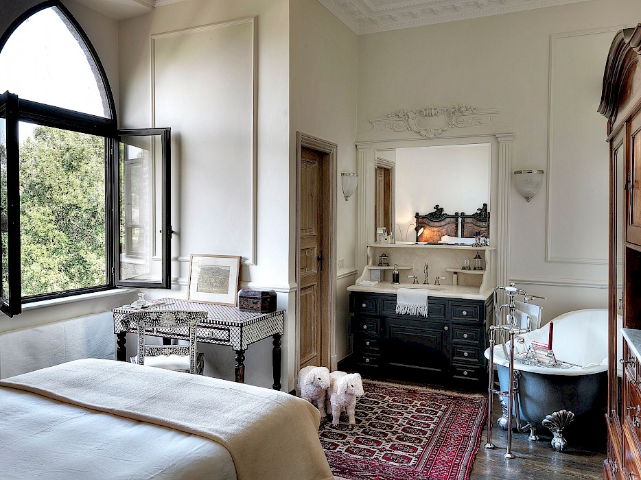 Palazzo Chiusi is a luxurious villa dating back to the 18th century with a unique Gothic style facade. The owner, a famous interior designer who managed the refurbishment of the Hotel Hassler in Rome, directed the recent renovation herself transforming the property into a true masterpiece. The villa now combines sophisticated interior design with personal distinctive touches creating authenticity and exclusivity. Located in an enviable position in the Tuscan countryside and immersed in a lush park; the perfect place to enjoy an intimate and private vacation.