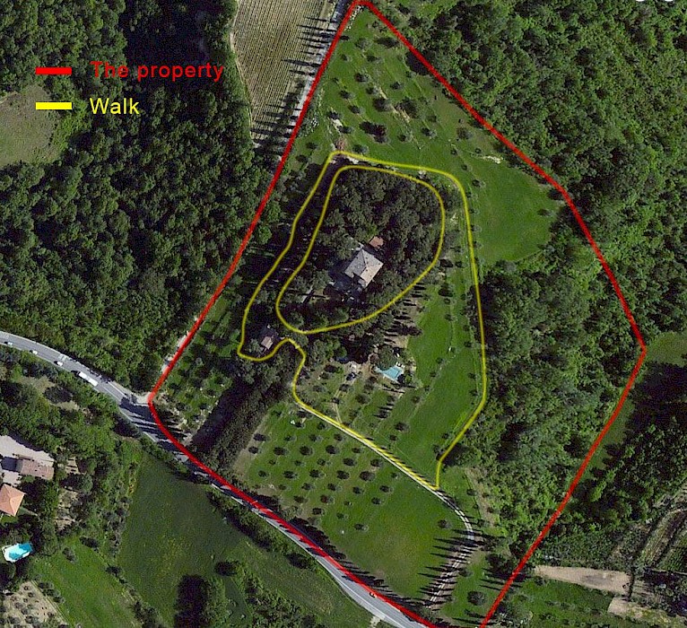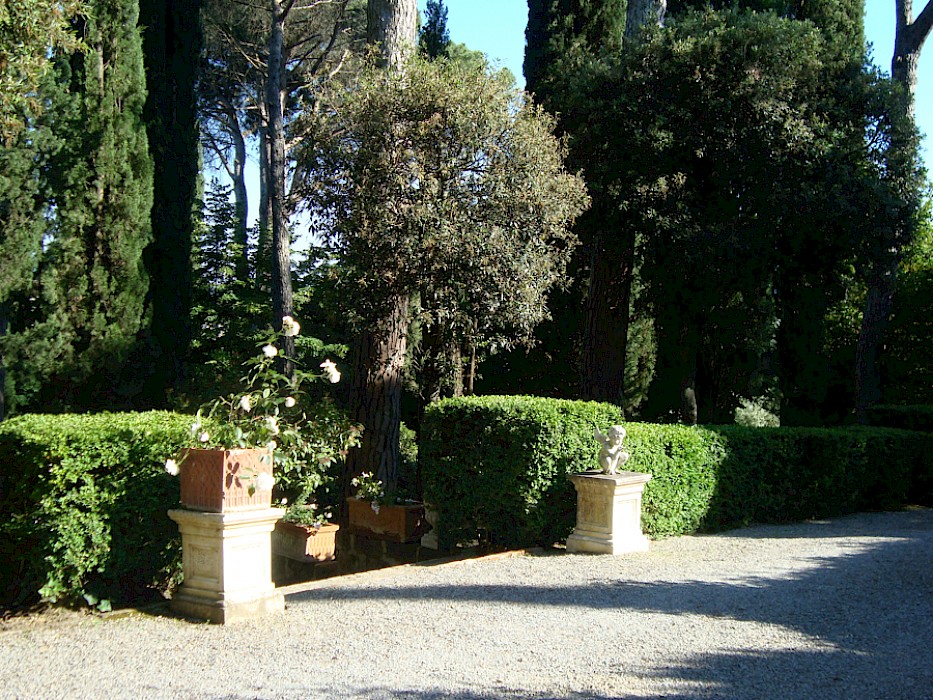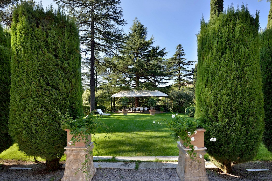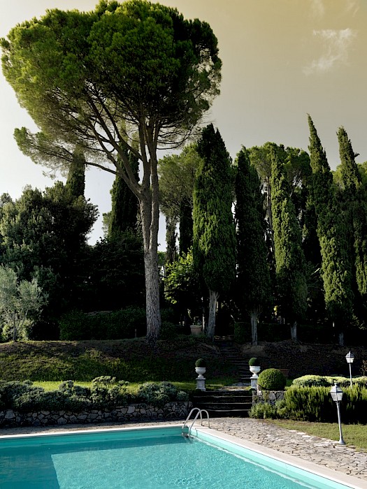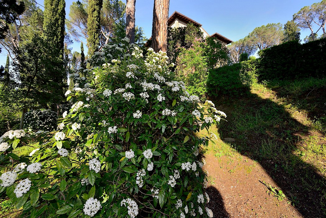 Nearly sixty acres of land surround this beautiful villa featuring an entirely private Italian park marked with the characteristic flora of prestigious Tuscan gardens. The centennial Cedars, Elms, Mediterranean Pines, Cypress, Box shrubs, Bay Laurel, Lemon and Pomegranate trees all overlook the extensive olive orchard from which are produced an exquisite and exceptional olive oil.