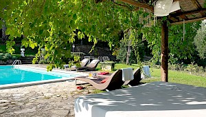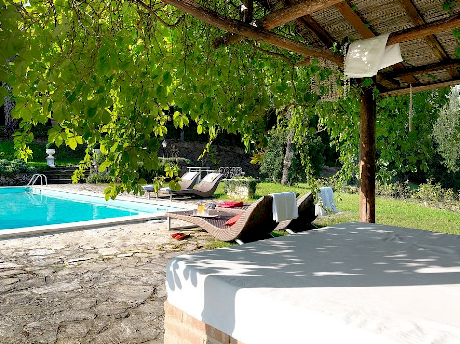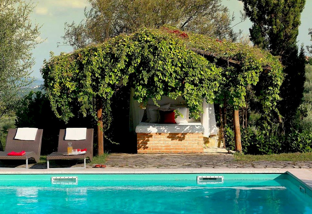 The private park of 60 acres in which the villa is immersed is full of characteristic Tuscan flora such as Mediterranean pines, cedars, lemon and pomegranate trees. The estate also produces its own organic olive oil and guests are welcome to take a stroll in the olive orchard. The villa's private swimming pool invites to relax soaking in the glorious Tuscan sun enjoying a drink prepared in the pool bar, while the several outside dining and sitting areas enable guests to pursue their favourite past-time, be it reading a captivating book, savouring delicious food or catching up with family and friends. The Val d'Orcia, the region in which the villa is located, is characterised by picturesque towns and villages. For its beauty, the valley was added to the UNESCO World Heritage Sites. The area also produces prestigious wines like the Brunello di Montalcino and Rosso di Montepulciano.