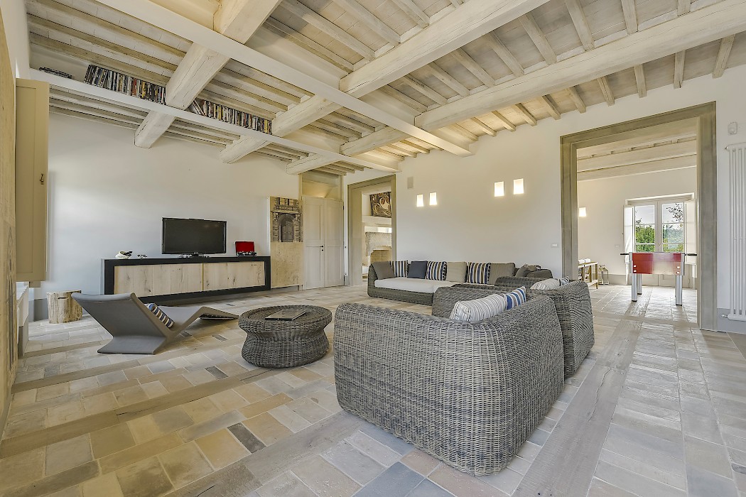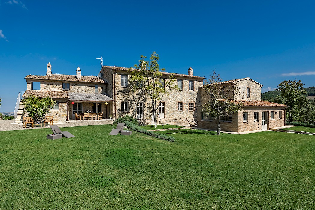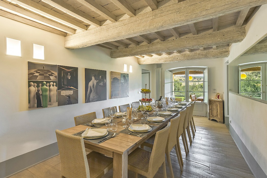 With its highly desirable Val d’Orcia location, the exceptional contemporary design, and its large indoor/outdoor space, Villa Poderosa is an excellent house for large groups with children. It is suitable for year-round rentals thanks to the amenities offered and also ideal for wellness retreats due to its vicinity to the Thermal waters of San Casciano.