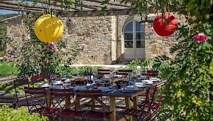 Castello Di Fighine-53040 San Casciano dei Bagni Tel 0578 56158 One Michelin star. 5.5 mile drive from the villa. A dirt track leads to this magical spot, where a medieval castle offers views of the surrounding hills. Meals are served either in the attractive dining rooms or on the romantic wisteria covered terrace in fine weather. Fresh cuisine with a personal touch. Upper modrate-expnsive.