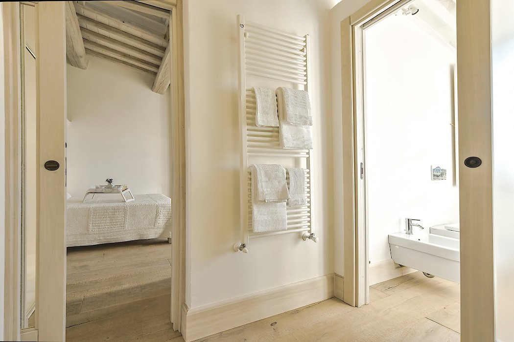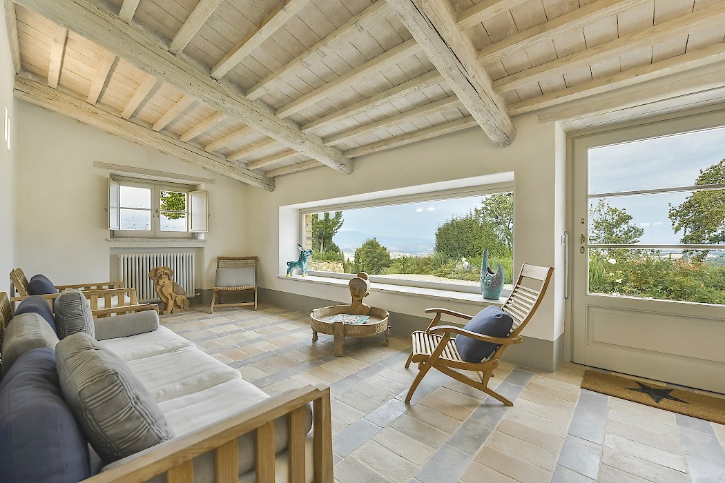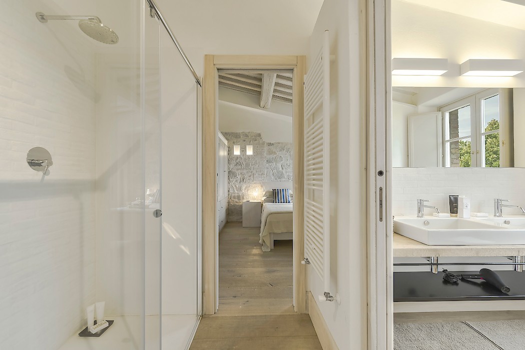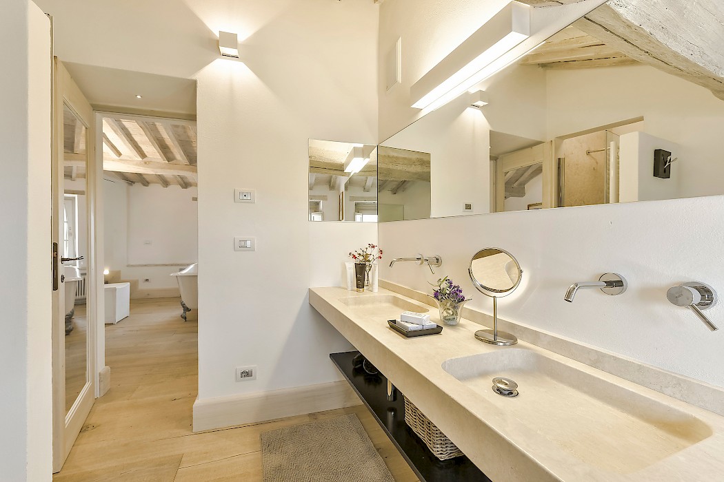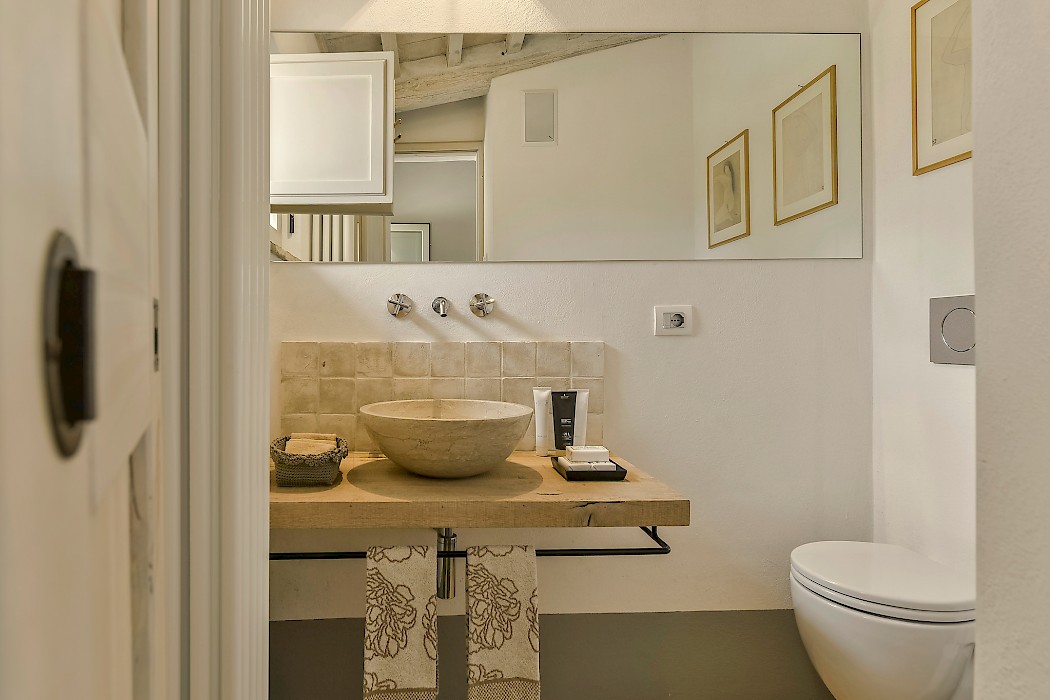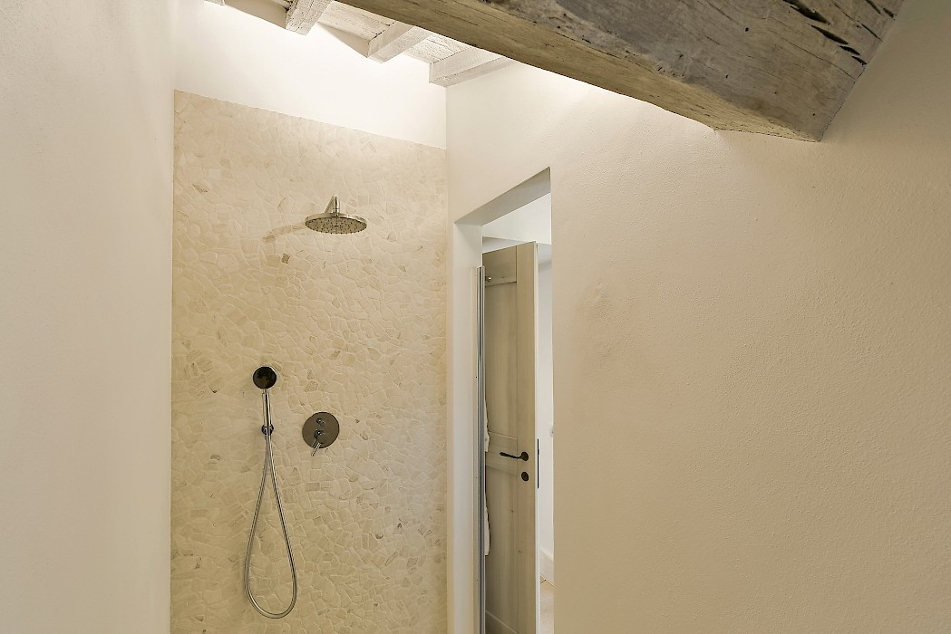 The recent meticulous restoration brought this property back to its authentic character with an eye on modern sophistication through high quality materials, attentive detailing, and a soothing color palette. The custom-built private wellness area includes an indoor swimming pool with counter-current swimming system, a steam room, a sauna, a shower, and a fully equipped gym. These features make the villa an ideal retreat also in the colder months.