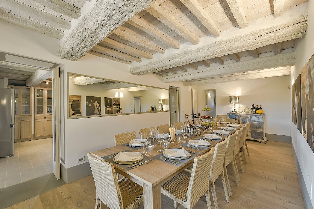 This two level luxury villa is one of the most unique and stunning homes in this area. Set atop a hill, this elegant contemporary property dominates the surroundings and offers dramatic panoramas of the rolling Tuscan Hills. An exquisite selection of custom-made furniture and extraordinary artisanal finishing are evident throughout the house, from the ample airy social rooms to each of the bright 10 bedrooms; an impressive list of luxurious amenities make this villa a superb choice for first-class vacation retreats.