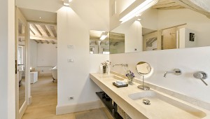 bedroom 9: master bedroom (bed size 180x200cm, not convertible into a twin), 2 steps down, en suite bathroom with bath tub, double basin and spacious shower stall (plus extra hand held shower), studio with printer.