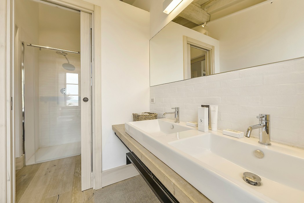 bedroom 4: double bedroom (bed size 180x200, not convertible into a twin) with en suite bathroom with shower cabin (plus extra hand held shower).