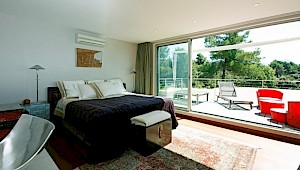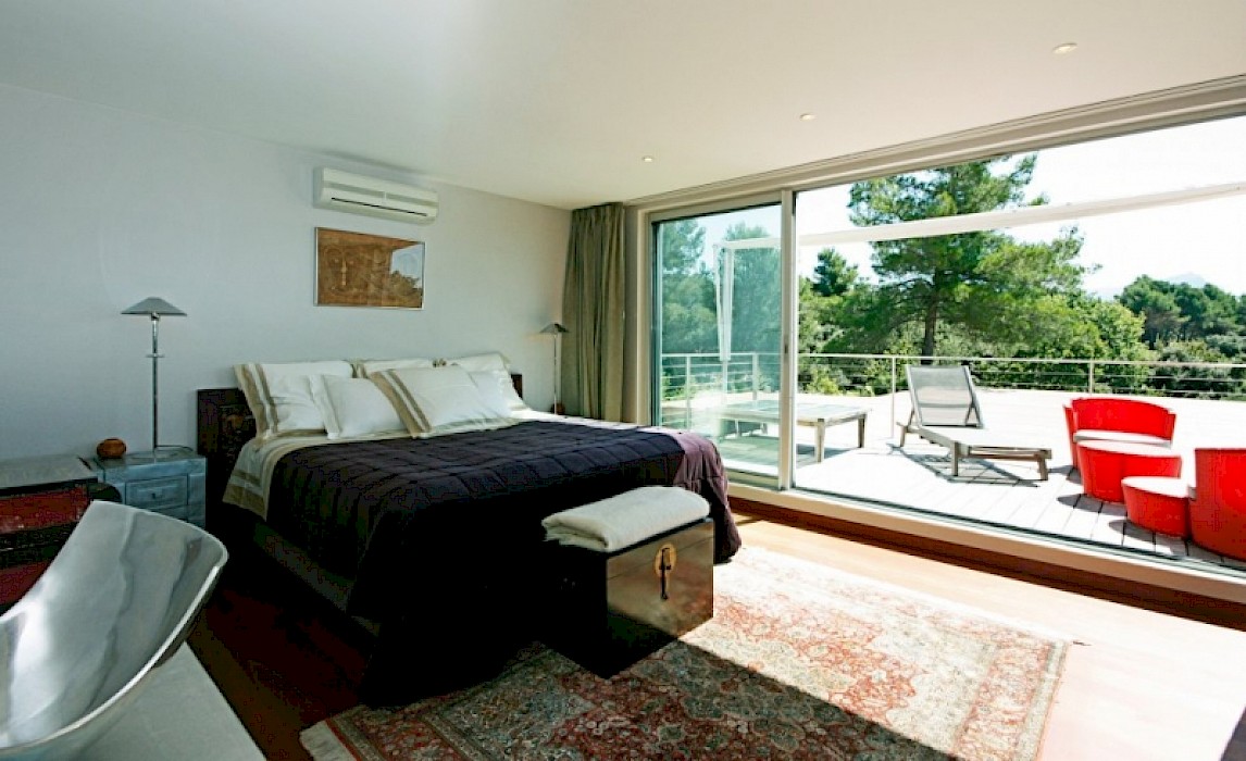 - Bedroom 5 (East Wing - First Floor) - Master bedroom: large king size bed (200 cm), A/C, dressing room, large en-suite bathroom (bathtub, shower, washbasin, and WC), private terrace overlooking the 'Sainte Victoire' mountain.