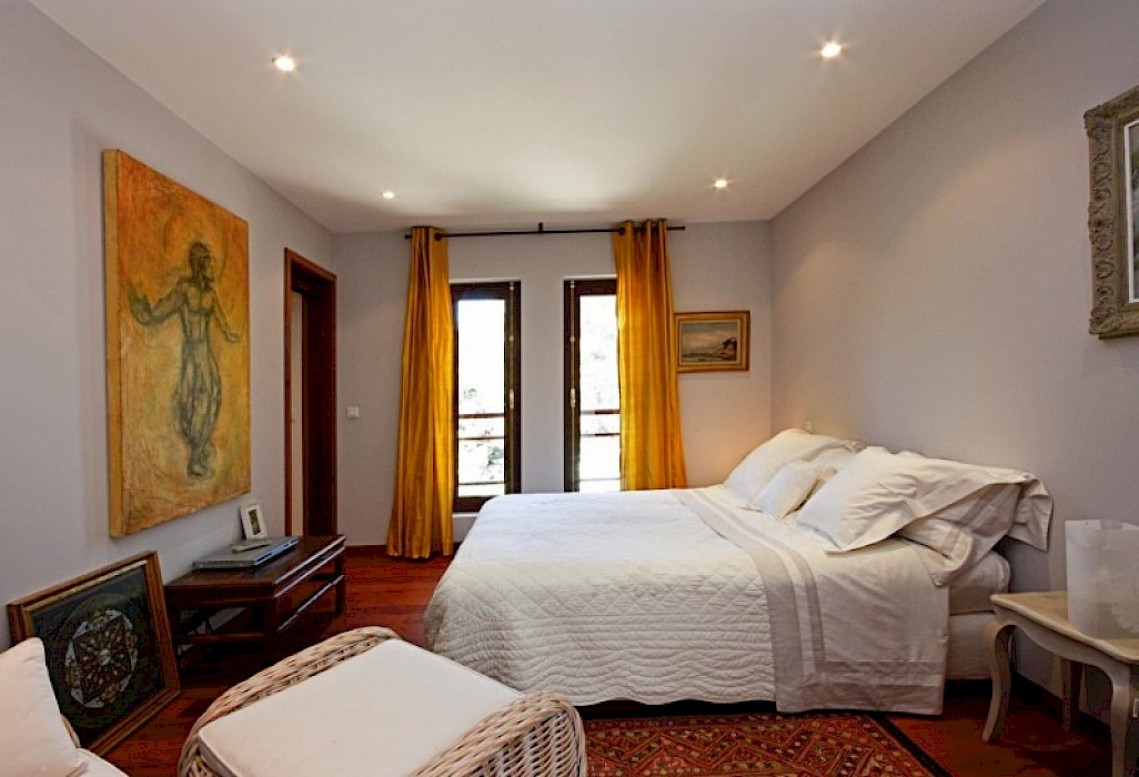 - Bedroom 1 (West Wing- Ground Floor) - Large king size bed (200 cm), connected to a magnificent bathroom with Jacuzzi like bathtub, Italian shower, double washbasins, and WC.