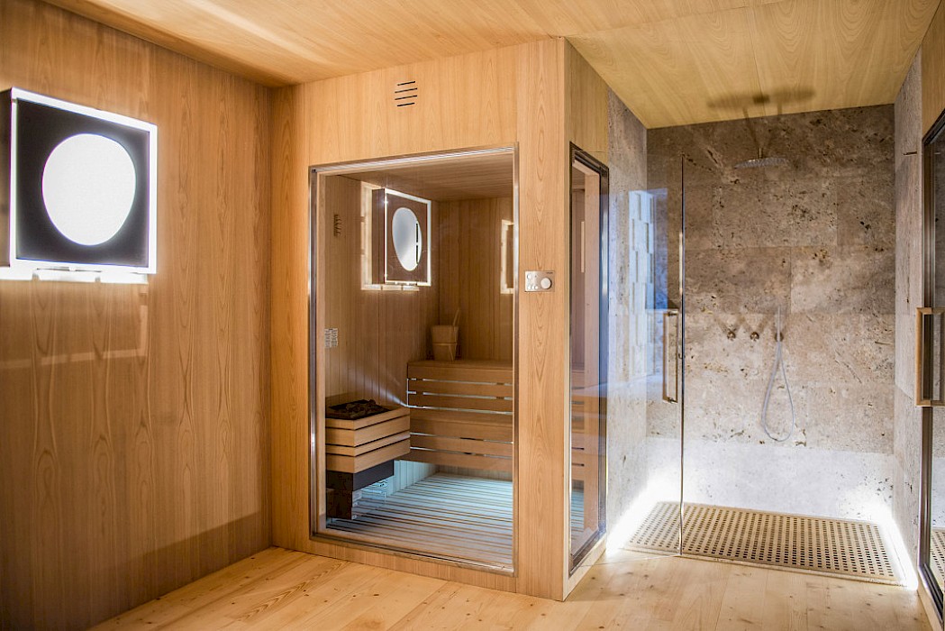 - wellness area with sauna Turkish bath relax room and massage area