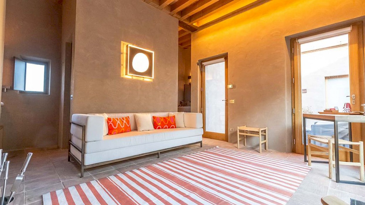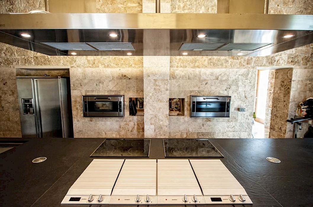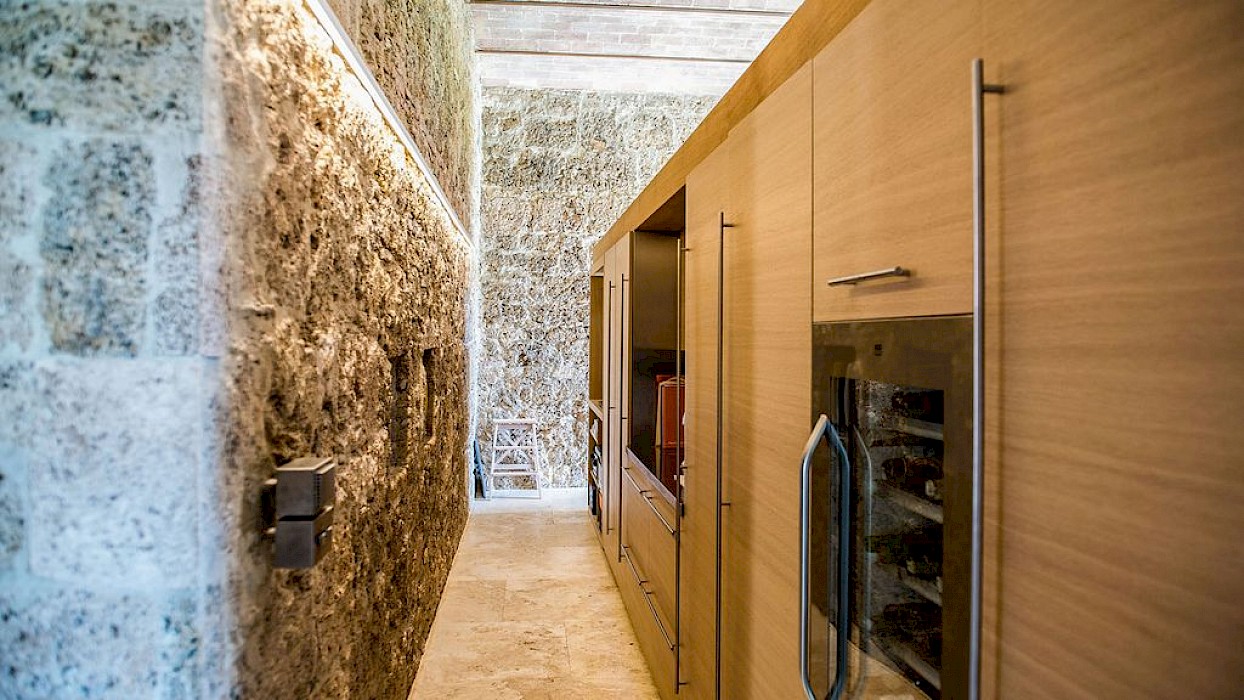 Next to the villa there are two guest houses and a third building with a large living room, bar and event space, in order to create the sense of being in a “village”. Two large ponds on the grounds give a relaxing sound of water and divide the villa and the guest houses in an elegant way. Under one of the ponds there is a gym, partially open to outdoors and a beautiful private spa. The third building, normally closed, is ideal for events, birthdays or small weddings. It offers a pizza oven, large stone built BBQ, bar and a room to host wine tasting or other events.