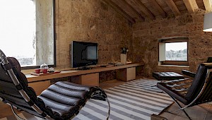 Guest house 1 sleeps 2/4 1 double bedroom (not convertible into a twin) with flat screen TV and en suite bathroom with shower cabin, fridge. Living area with king size sofa bed, flat screen TV, fireplace, small kitchenette and 1 bathroom with shower cabin. Guest house 2 sleeps 2/4 1 double bedroom (not convertible into a twin) with flat screen TV and en suite bathroom with shower cabin, fridge. Living area with king size sofa bed, flat screen TV, fireplace, small kitchenette and 1 bathroom with shower cabin. Wellness room small wellness center equipped with: turkish bath, Finland bath, sauna, big flat screen TV, massage area, guest bathroom, big shower and fridge.