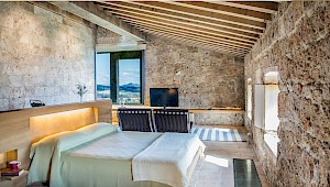 4 spacious double bedrooms (not convertible into a twin) each with big living area, flat screen TV, en suite bathroom with shower cabin, fridge and coffee machine.