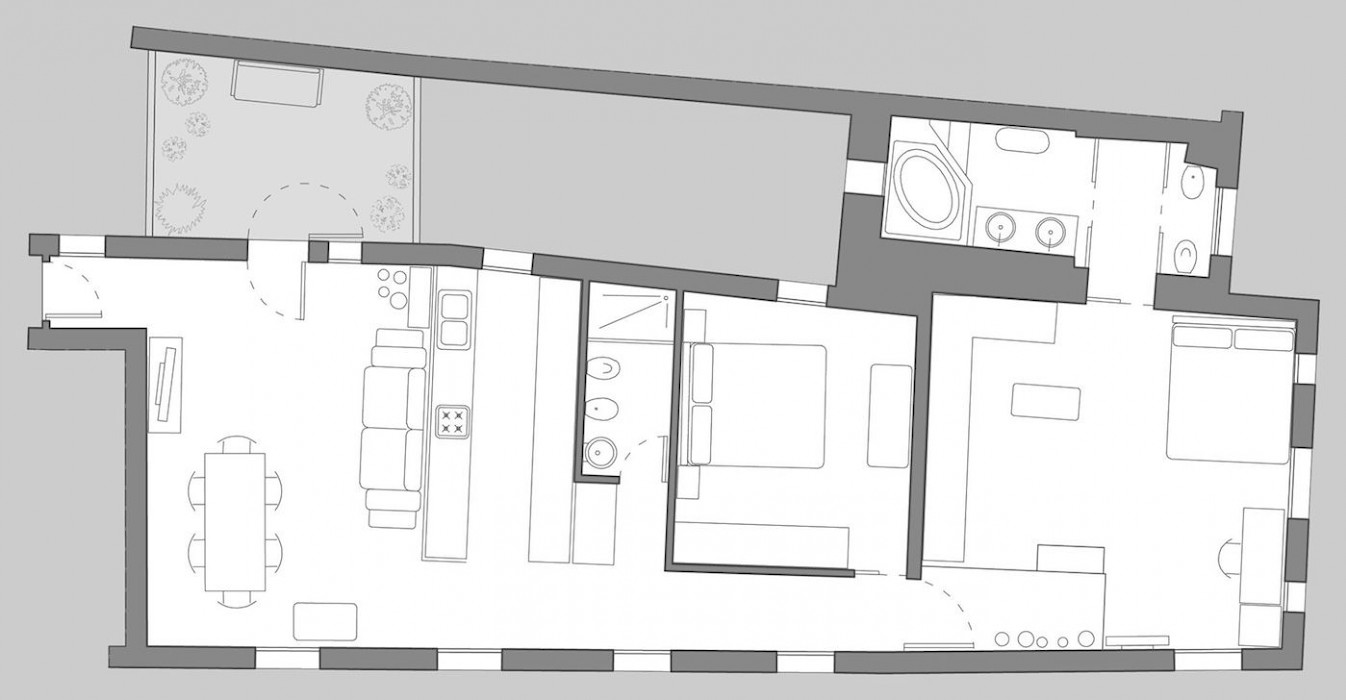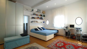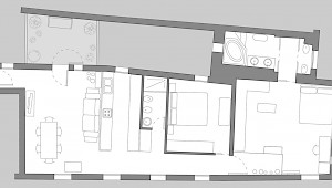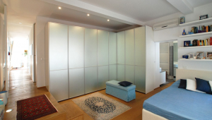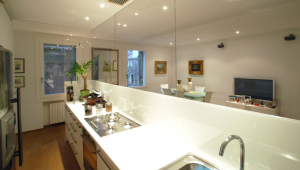 The living room gives access to a lovely small terrace and a well equipped high-tech kitchen. A corridor connects the living area with the bedrooms, the first of the two being rather small but nice, the second much bigger with plenty of storage space. The bathrooms are luxurious, the first with a large shower, the second with spa bath. The view from the living room of St. Mark's Bell Tower is nice and is a reminder of just how close you are to San Marco Square.