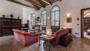 Original “Palladiana” flooring, antique exposed wooden trusses and super-high ceilings, original tall arched windows with peaceful view on private gardens, walls decorated with “Stucco Veneziano” in every room are some example of the conservative restoration performed by the caring landlady who really didn’t save on this project!