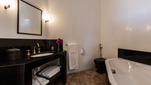 Not enough? The most remarkable part of the project in our opinion are the two king size bedrooms with en-suite bathrooms, located at opposite sides of the living room to guarantee total privacy, both with pleasant garden view and plenty of natural light, both with luxury en-suite bathroom. In particular the bathroom with shower features an antique stone wash-basin which you can’t find anywhere else.
