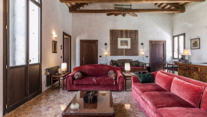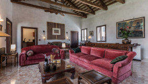 It is found at the first floor and is laid out on about 150 square meters/1615 sq. ft: a generous size for a 2 bedrooms apartment! Walking up the stairway that leads to the huge central living room, full of charm and history, you immediately understand the prestige of this property.