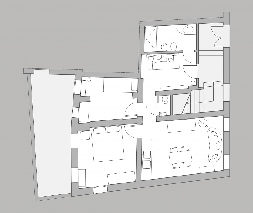 This lovely apartment is perfect for a couple or up to three singles (each of them can sleep in separate rooms using also the sofa-bed of the entrance room). The quality of the interiors guarantees maximum comfort. The landlord doesn’t allow children.