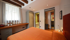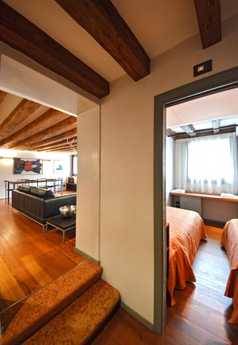 From the very first steps you will be surprised by the elegance of the fitting, starting with the stylish lounge, a place to relax on the comfortable sofas while enjoying the picturesque atmosphere of gondolas drifting silently on the canal. You will be charmed by the rich marble and mosaic bathrooms, the parquet flooring, the wooden beamed ceilings and the Venetian stucco walls that bring a feeling of warmth to the space.