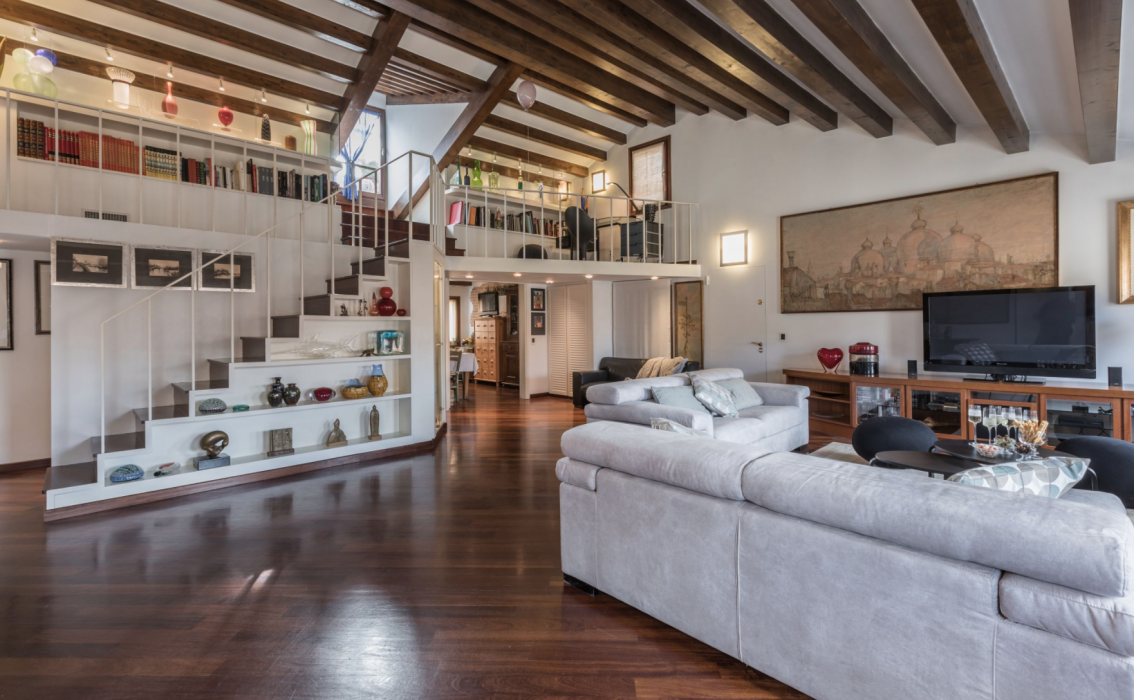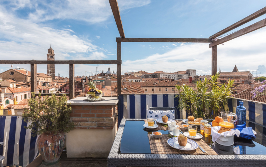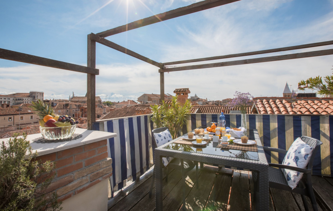 Few Apartments in Venice offer such a spectacular panoramic view over the roof-tops: on the quiet so called “Altana” (typical wooden roof-top terrace) you can relax under the sun during the day or have a romantic candle light dinner at night. It is easily accessible from an easy-to-climb staircase from the huge living room.