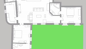 The aparmtent is on the first floor and is laid out over about 150 square meters: a generous size for a 2 bedrooms apartment! Walking up the stairway, you will be lead to the spacious central living room, full of charm and history, you immediately understand the prestige of this property.