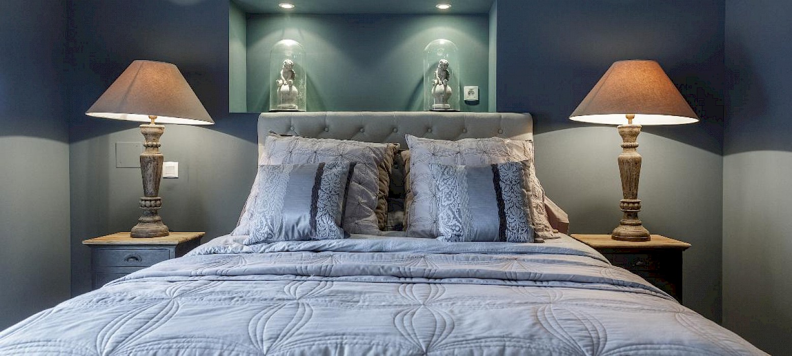 - Bedroom 1: Mezzanine bedroom overlooking the living room with queen size bed (160cm) and en-suite shower room (walk-in shower, no WC)