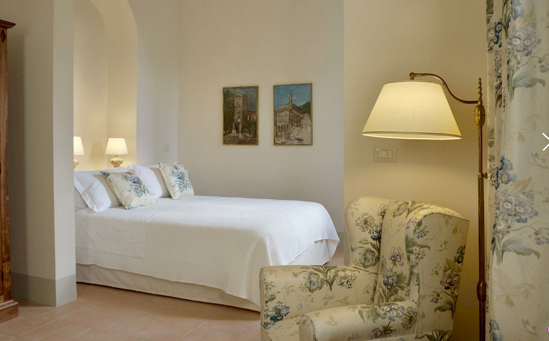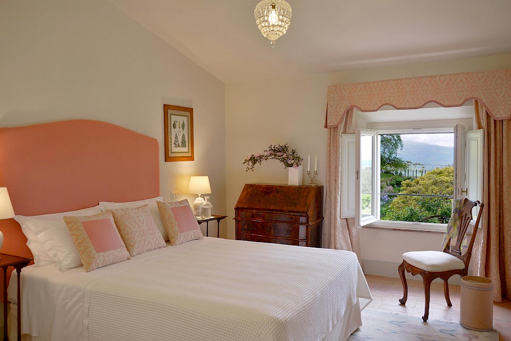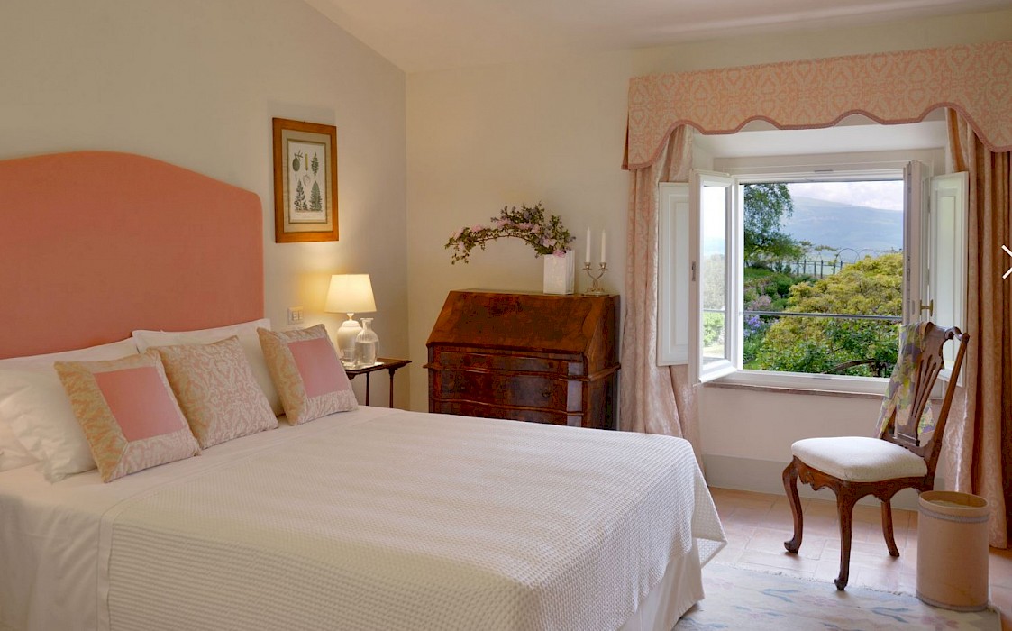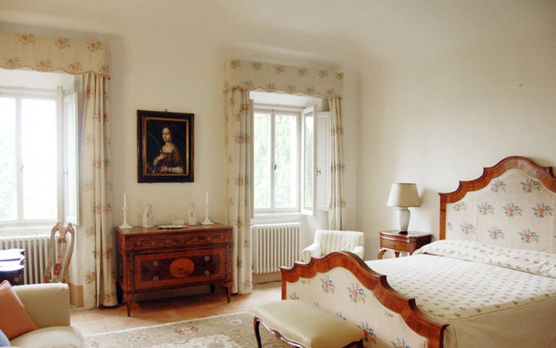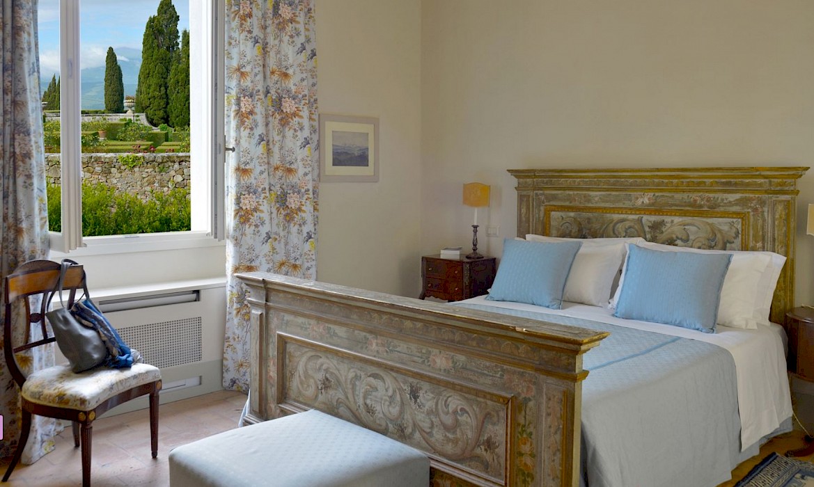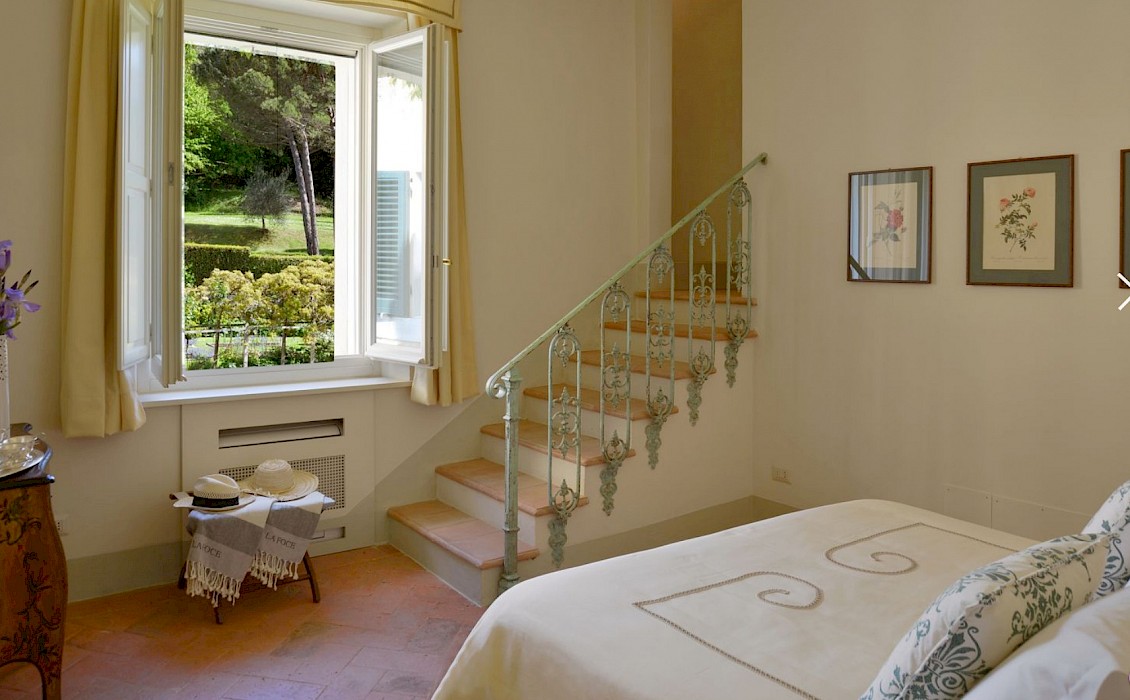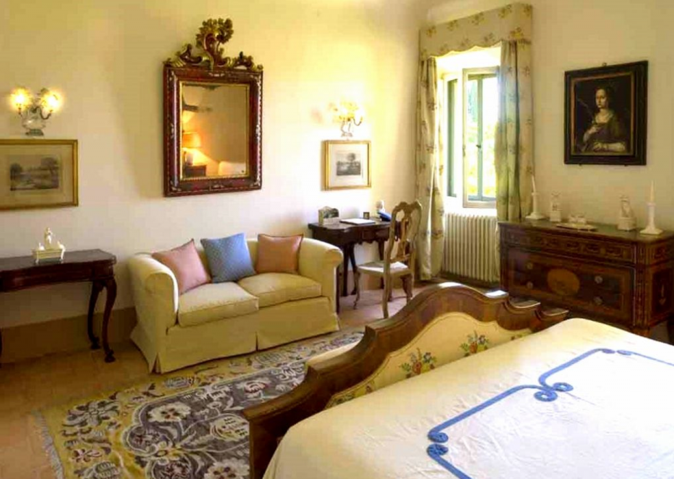 Two full-time maids (including a local cook) and an extra daily help care for the house and its guests. Meals are often held under the pergola in the garden, where guests can relax in the shade of roses and wisteria, lulled by the sound of water in the fountain nearby. The villa has some of the most beautiful Italian gardens in Italy and is both beautiful and historic. This house is the epitome of Tuscany. It is a traditional house built on three levels which is packed with old-world charm and filled with beautiful heirloom furniture, books and paintings. All rooms have stunning views over the classic garden and valley. The style is imaginative and opulent.The villa sleeps 19 guests, consisting of the main building and a separate apartment. The main building is for 14 people.