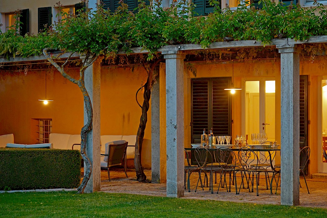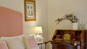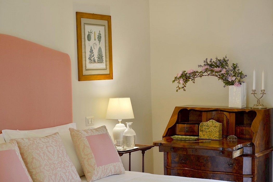 Three gardeners look after the premises, including the swimming pool opposite the 'limonaia' (orangerie). Guests relax in the shade of roses and wisteria, lulled by the sound of water from the fountain nearby.